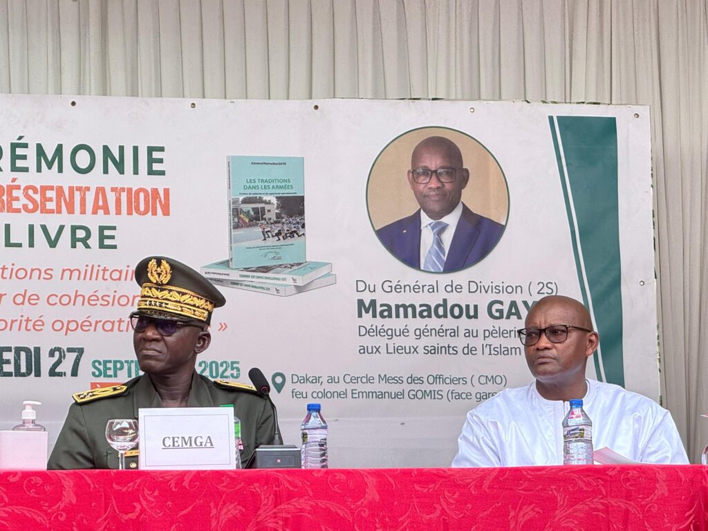 Le Cercle Mess des Officiers feu Colonel Emmanuel Gomis de Dakar a servi de cadre, ce samedi 27 septembre 2025, à un événement majeur dans l’histoire militaire du Sénégal : la présentation officielle de l’ouvrage « Les Traditions dans les Armées », signé par le Général de Division (2S) Mamadou Gaye, actuel Délégué général au Pèlerinage aux Lieux Saints de l’Islam.